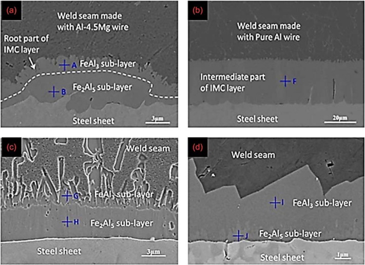 (2) The solubility between steel and aluminum is small, and the steel/aluminum dissimilar metal welding interface will form brittle intermetallic compounds, such as FeAl3, Fe2Al5, FeAl2, etc.